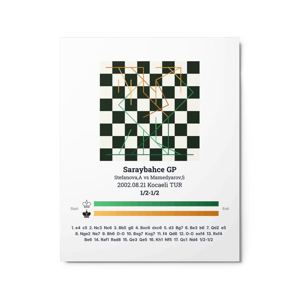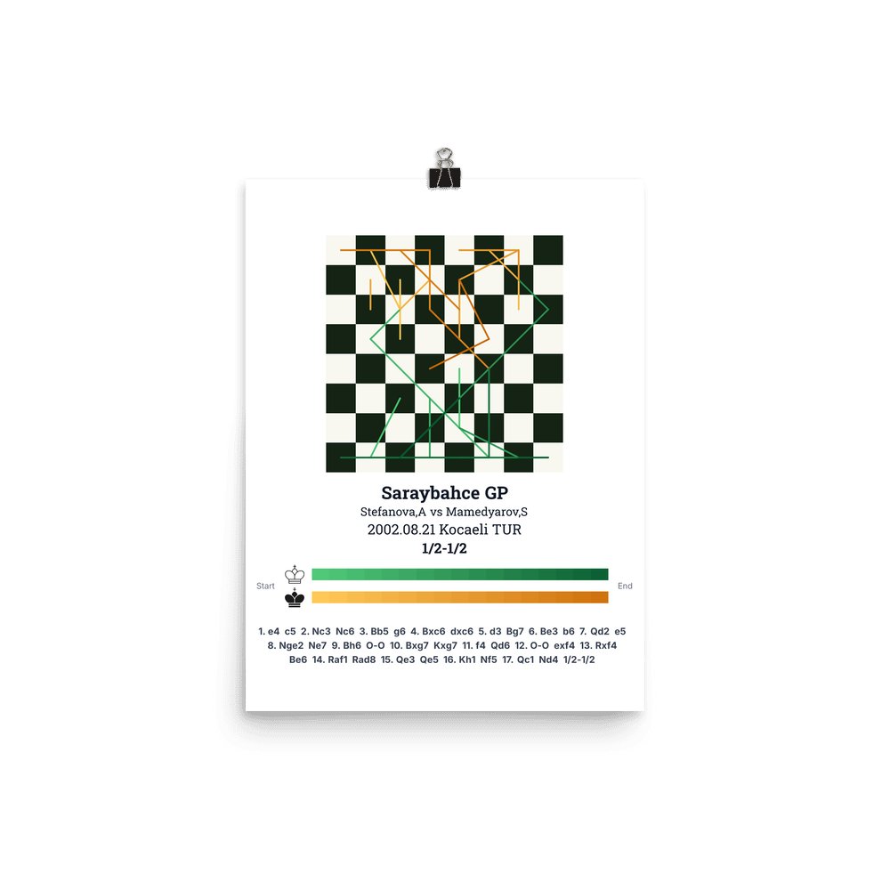 Museum-quality poster on thick, durable matte paper. A sharp, clean look for any chess visualisation.