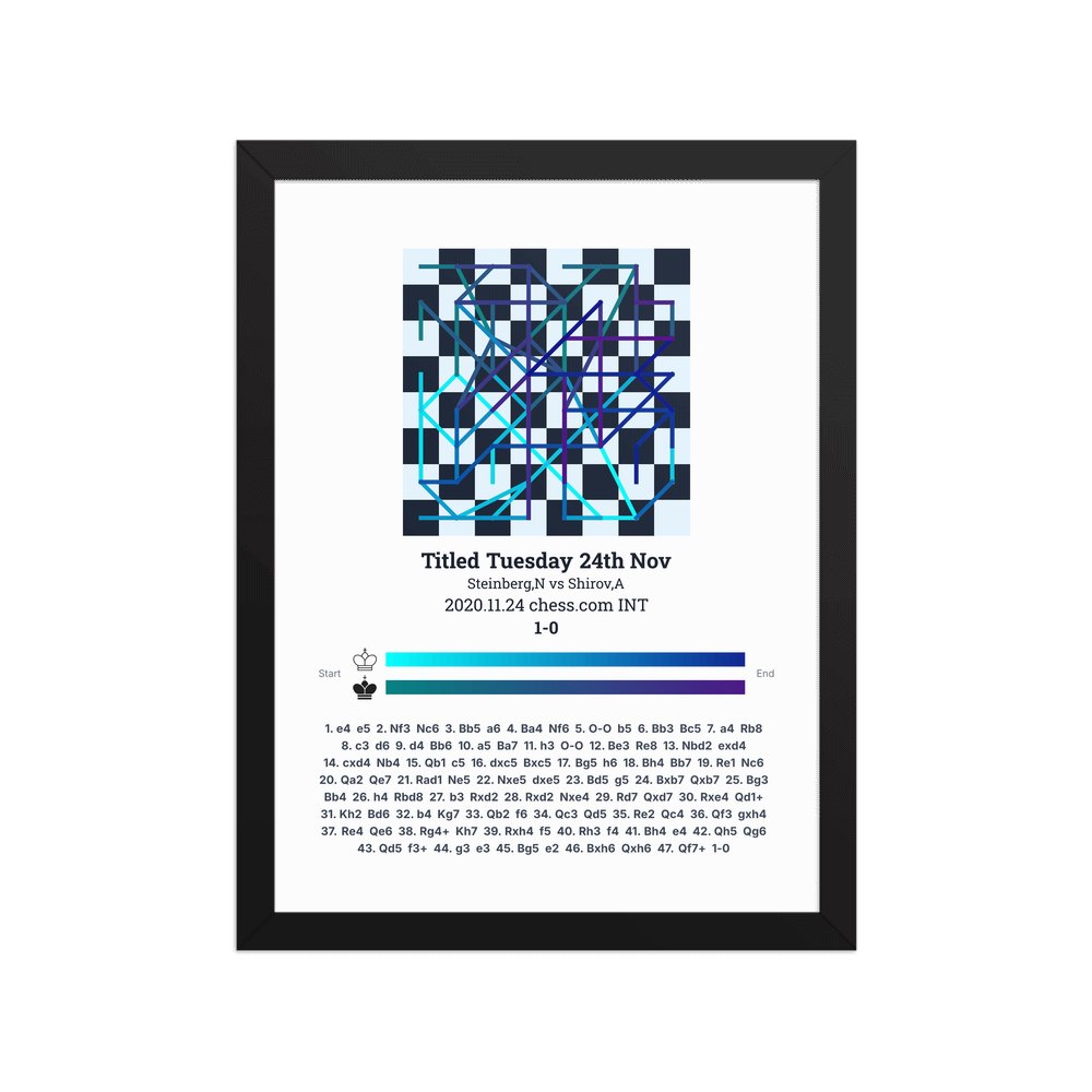Museum-quality poster on thick, durable matte paper. A sharp, clean look for any chess visualisation.