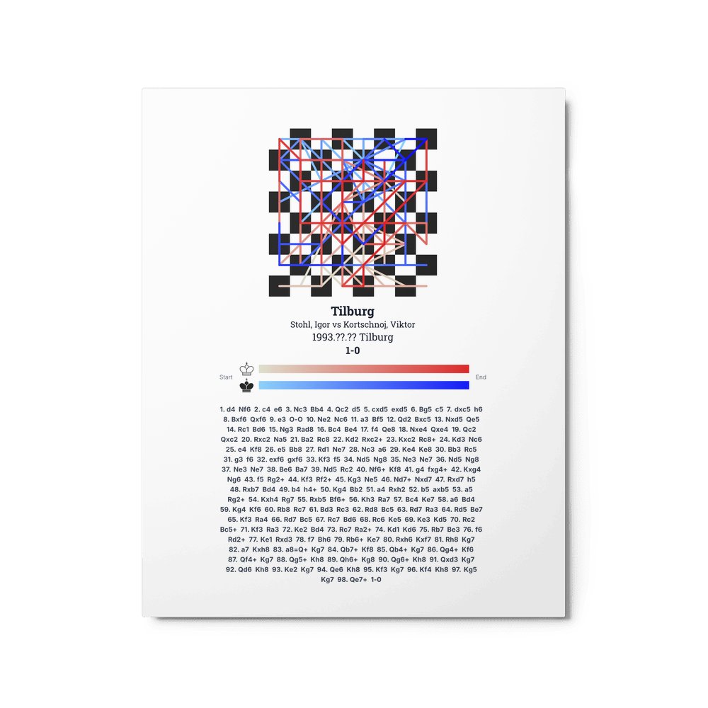 Museum-quality poster on thick, durable matte paper. A sharp, clean look for any chess visualisation.