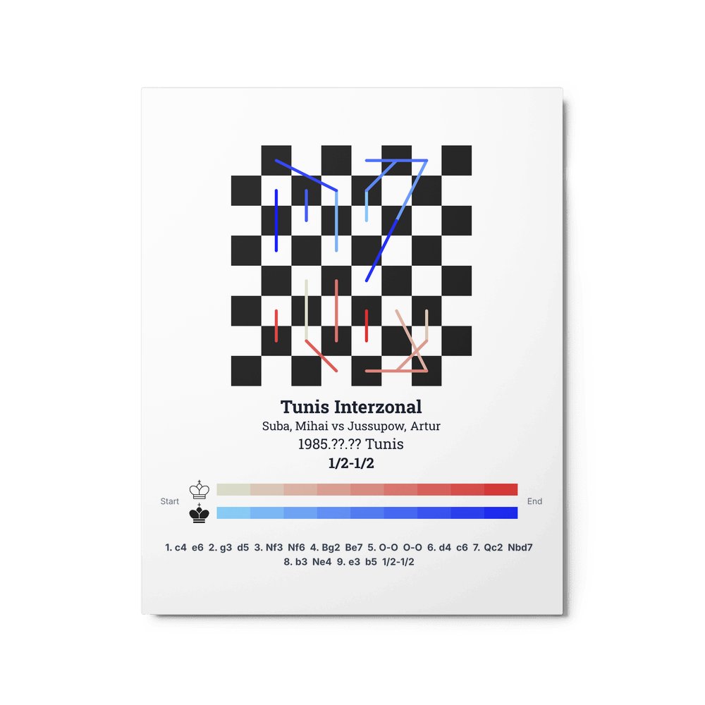 Museum-quality poster on thick, durable matte paper. A sharp, clean look for any chess visualisation.