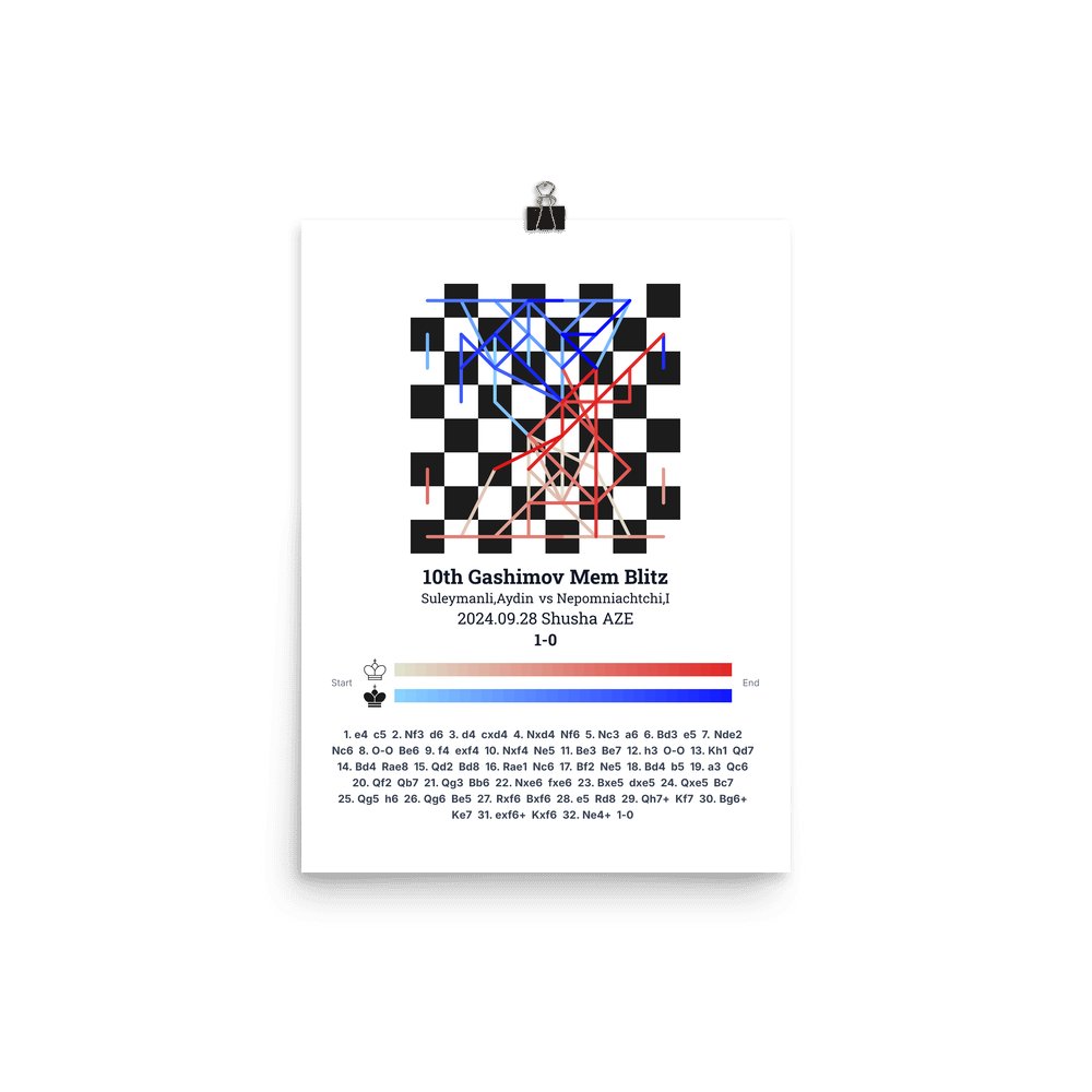 Museum-quality poster on thick, durable matte paper. A sharp, clean look for any chess visualisation.