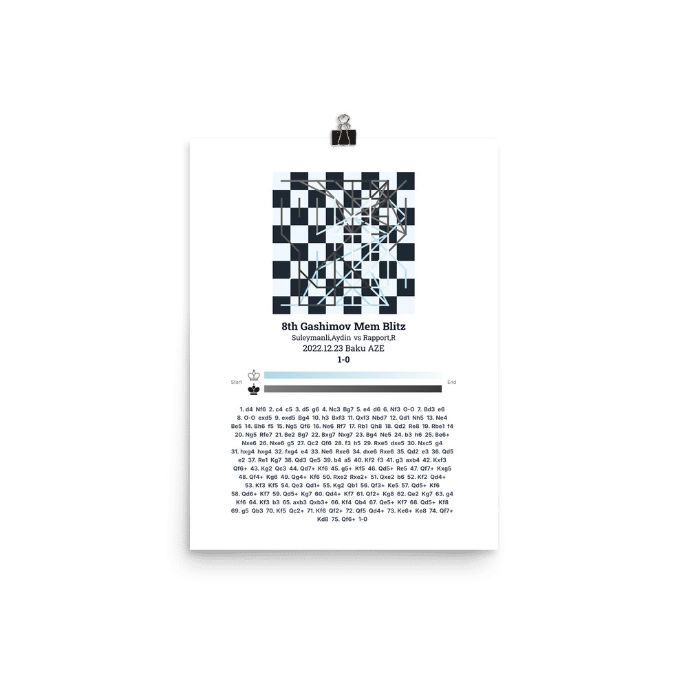Museum-quality poster on thick, durable matte paper. A sharp, clean look for any chess visualisation.