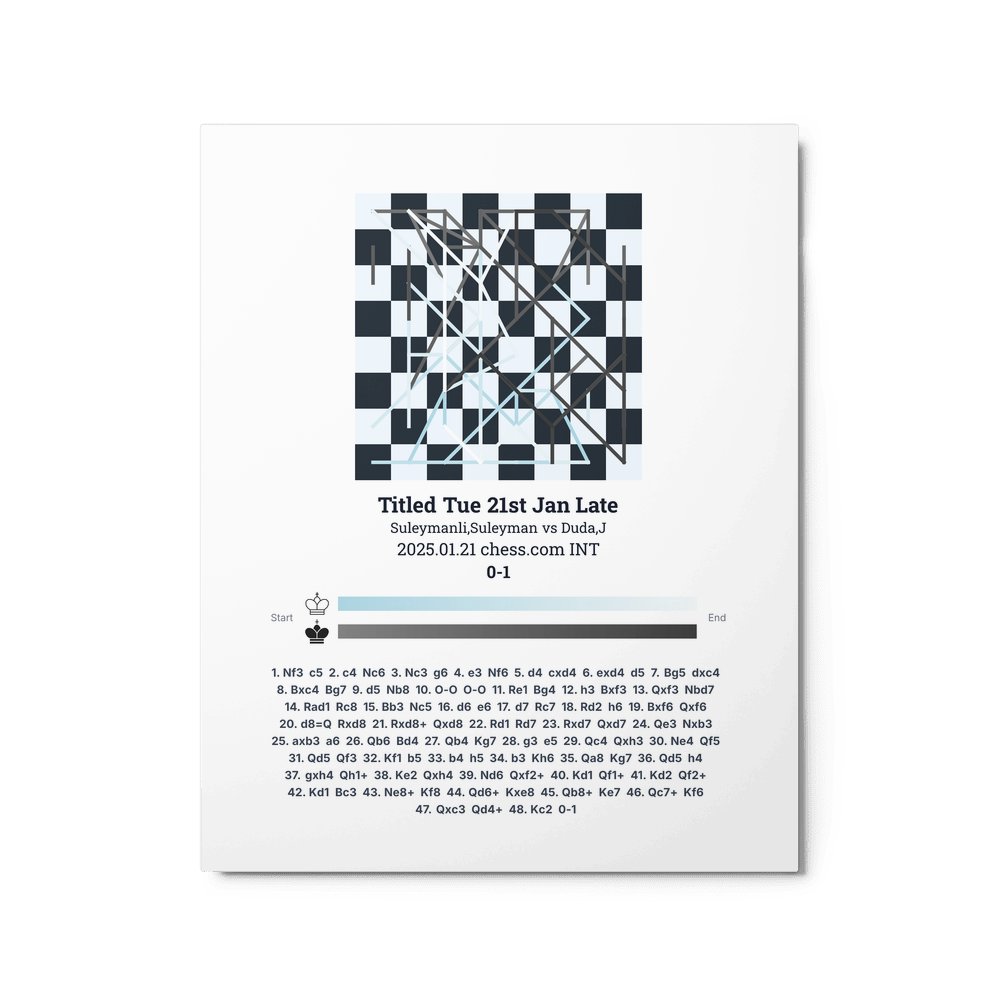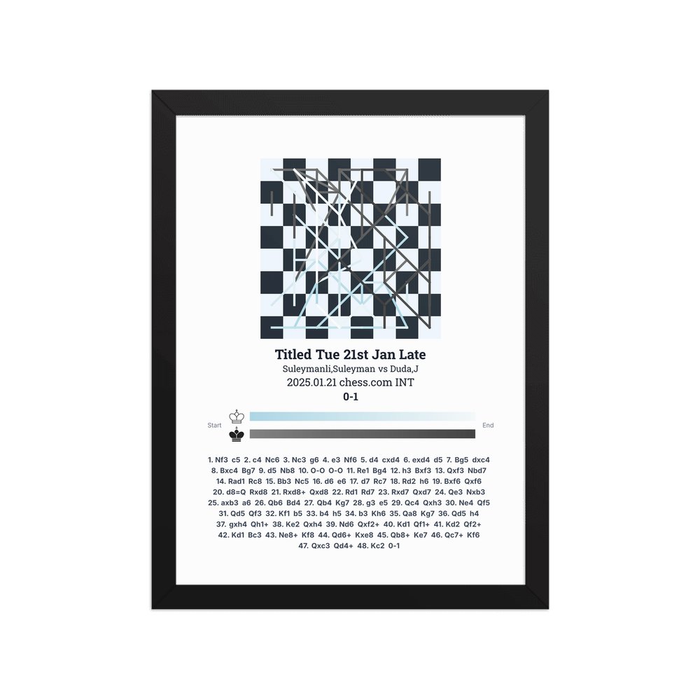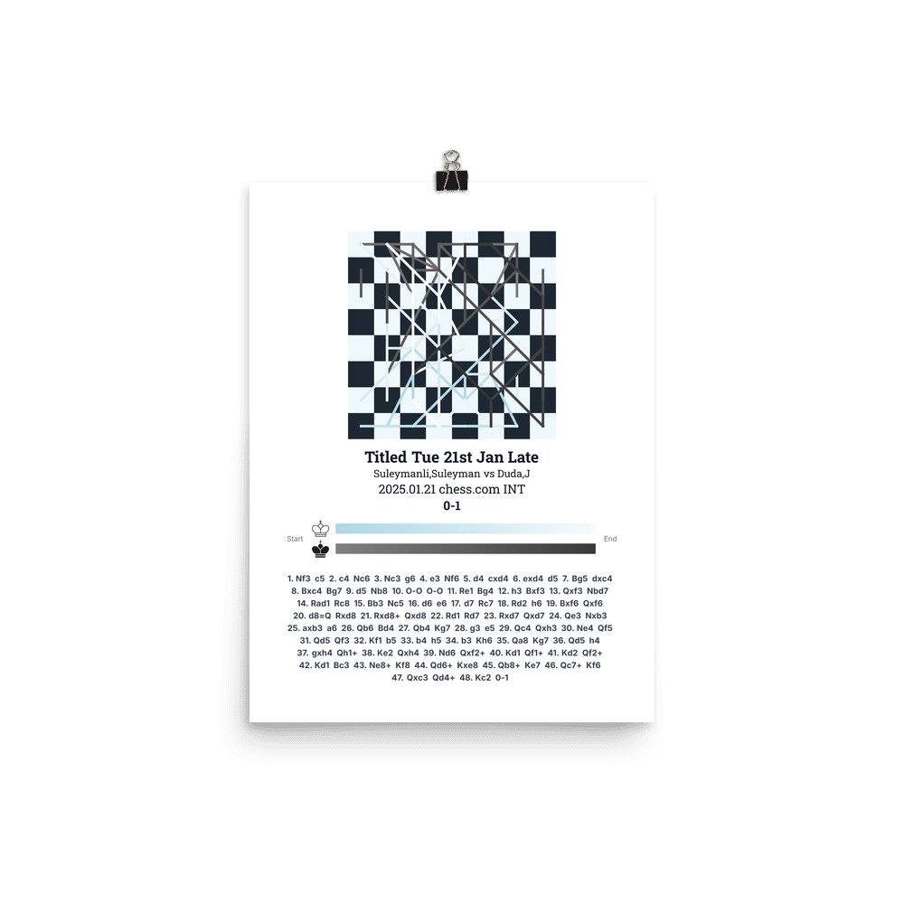 Museum-quality poster on thick, durable matte paper. A sharp, clean look for any chess visualisation.