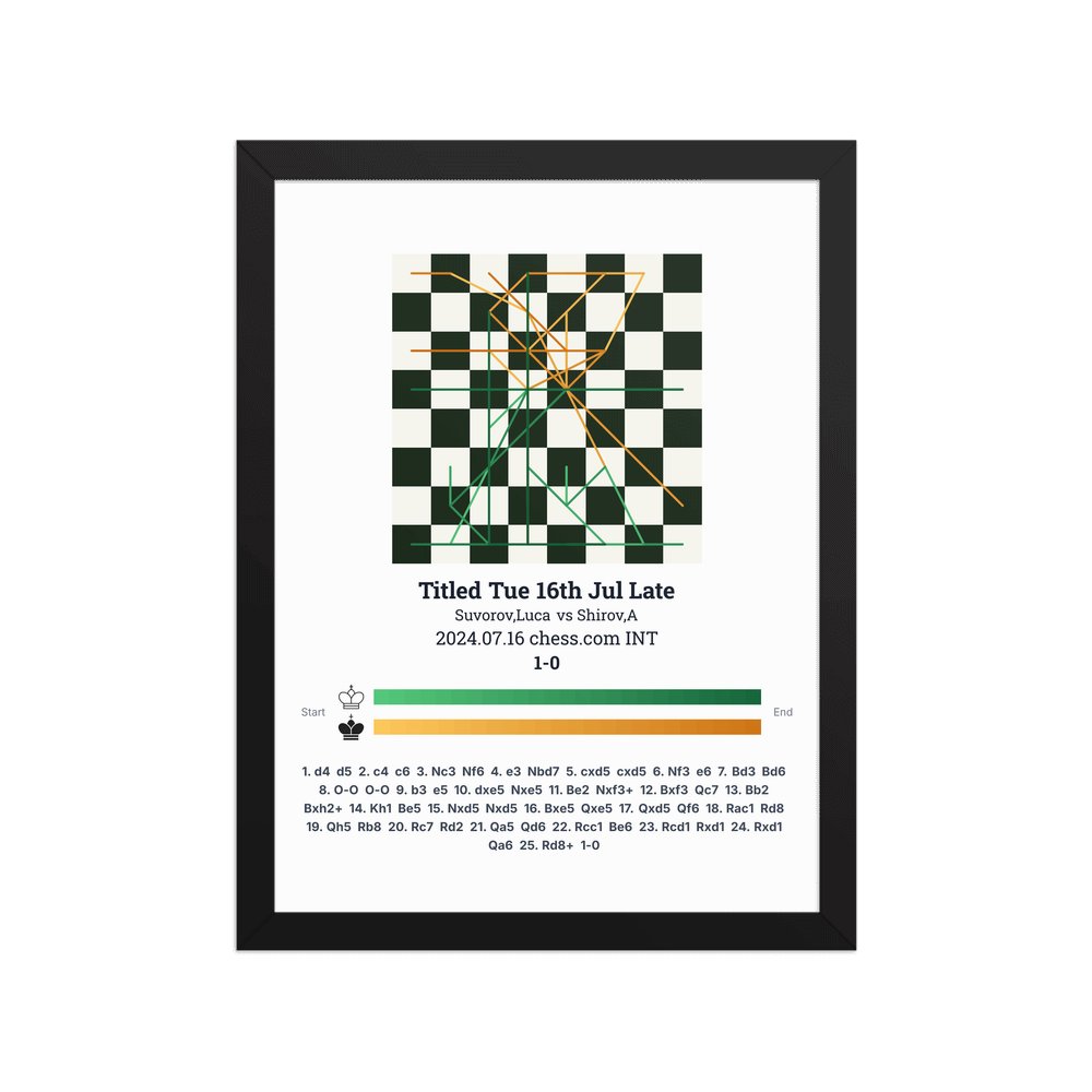 Museum-quality poster on thick, durable matte paper. A sharp, clean look for any chess visualisation.