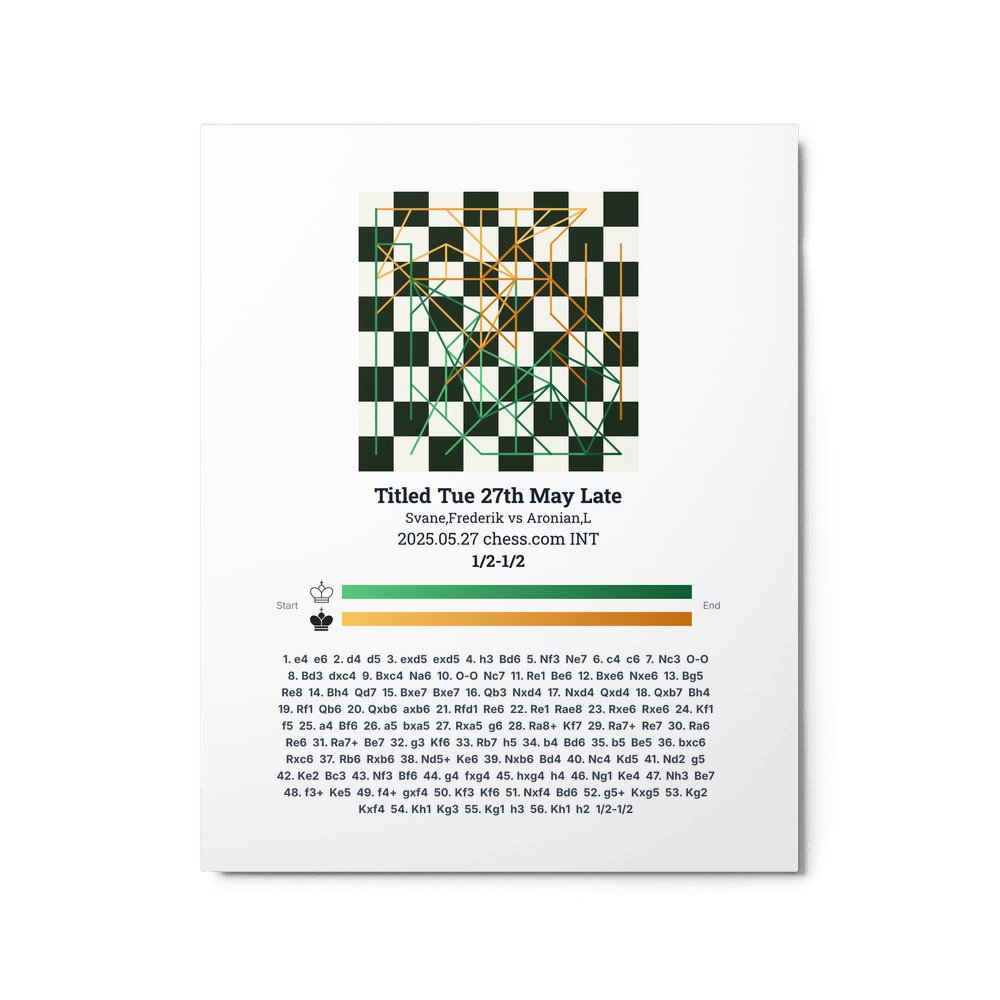 Museum-quality poster on thick, durable matte paper. A sharp, clean look for any chess visualisation.