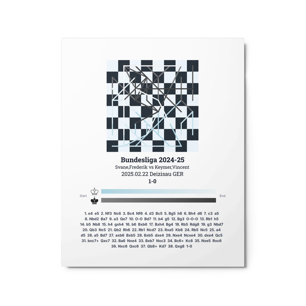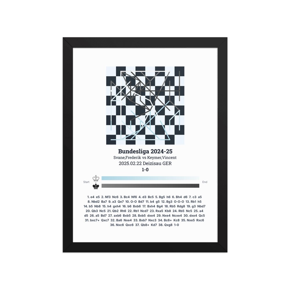Museum-quality poster on thick, durable matte paper. A sharp, clean look for any chess visualisation.