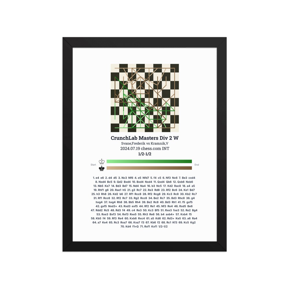 Museum-quality poster on thick, durable matte paper. A sharp, clean look for any chess visualisation.