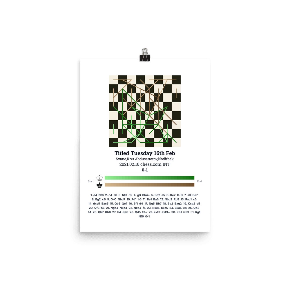 Museum-quality poster on thick, durable matte paper. A sharp, clean look for any chess visualisation.