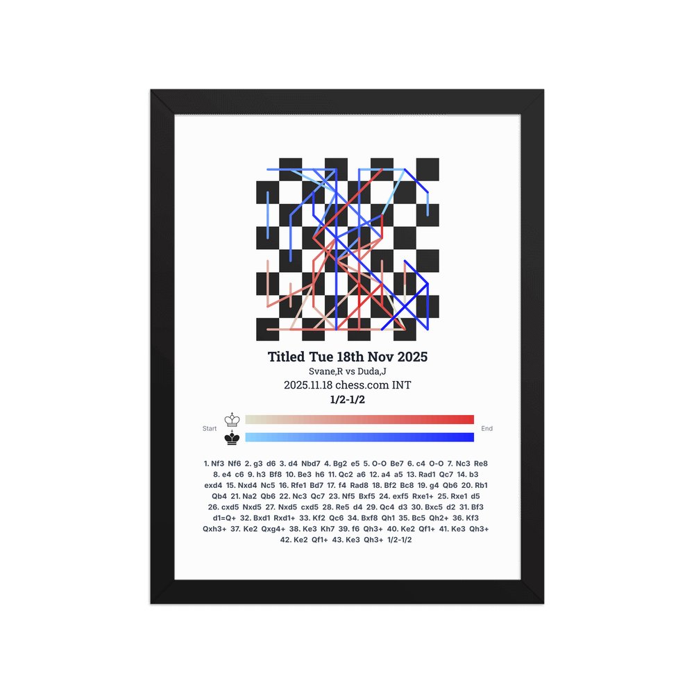 Museum-quality poster on thick, durable matte paper. A sharp, clean look for any chess visualisation.
