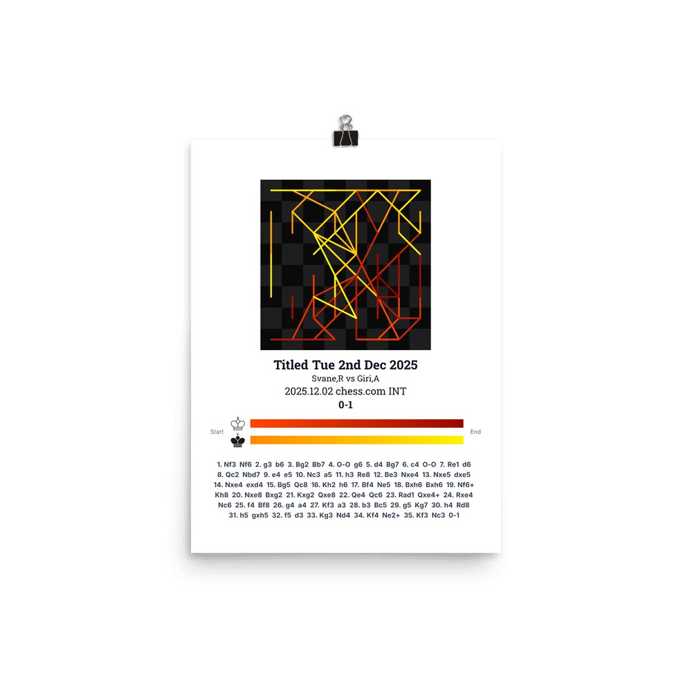 Museum-quality poster on thick, durable matte paper. A sharp, clean look for any chess visualisation.