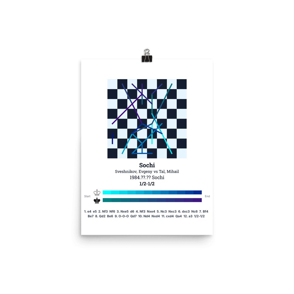 Museum-quality poster on thick, durable matte paper. A sharp, clean look for any chess visualisation.