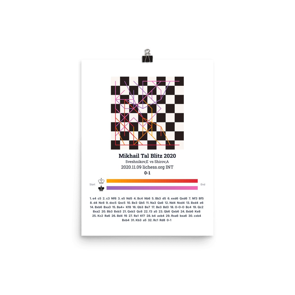 Museum-quality poster on thick, durable matte paper. A sharp, clean look for any chess visualisation.