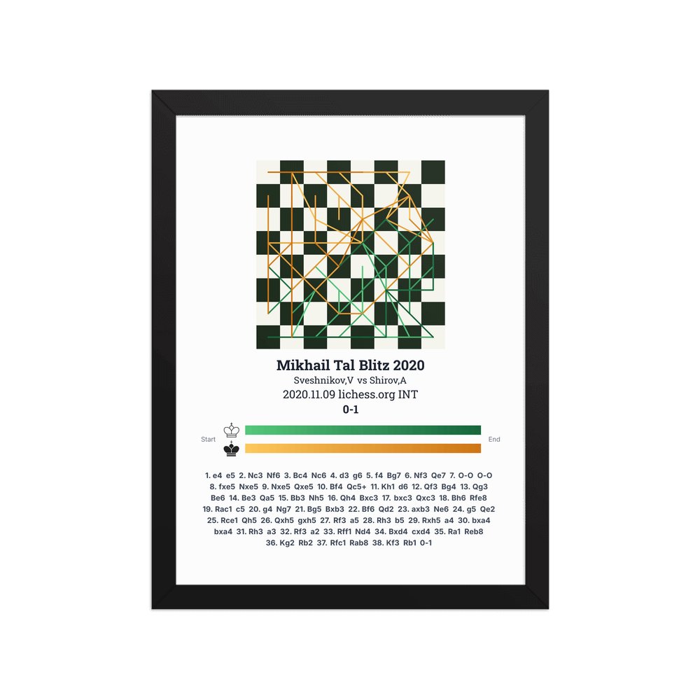 Museum-quality poster on thick, durable matte paper. A sharp, clean look for any chess visualisation.
