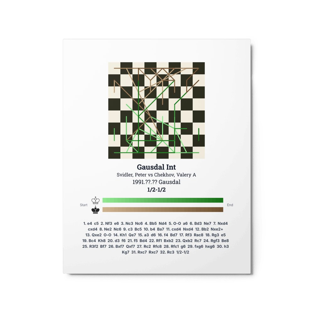 Museum-quality poster on thick, durable matte paper. A sharp, clean look for any chess visualisation.