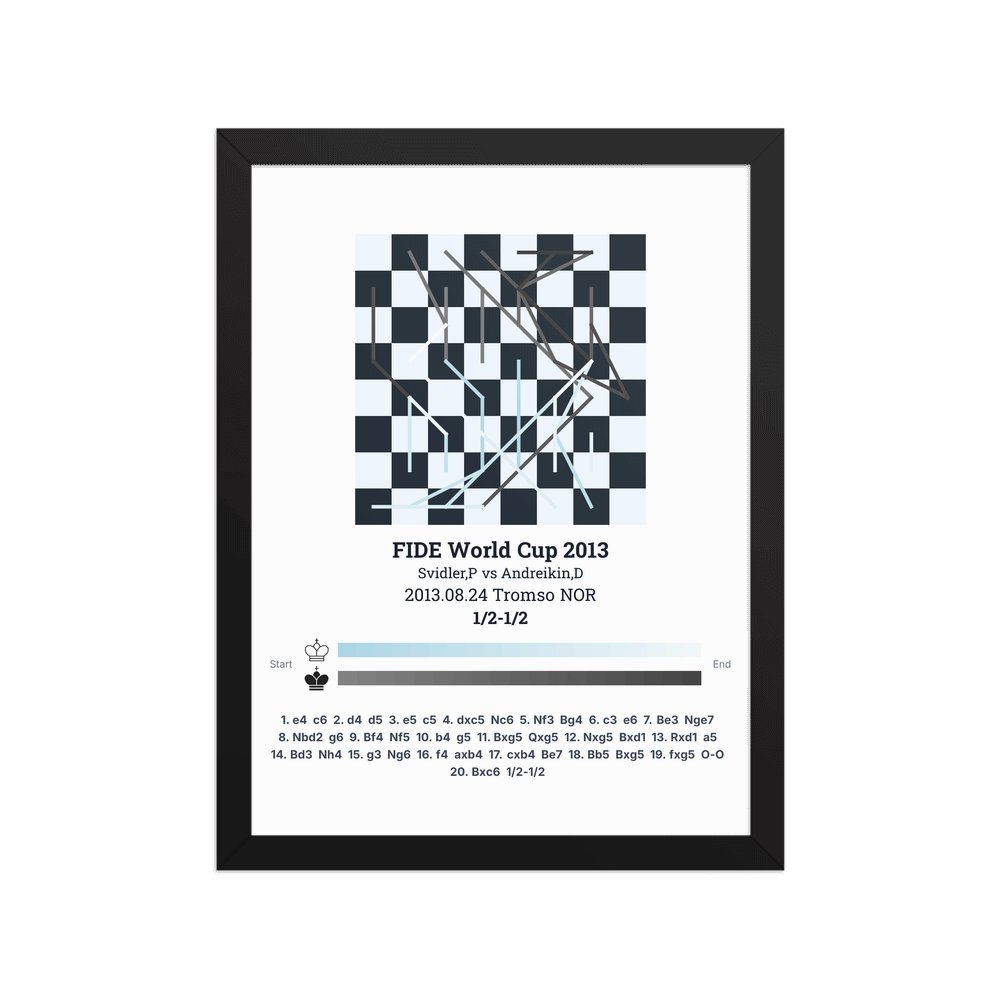 Museum-quality poster on thick, durable matte paper. A sharp, clean look for any chess visualisation.