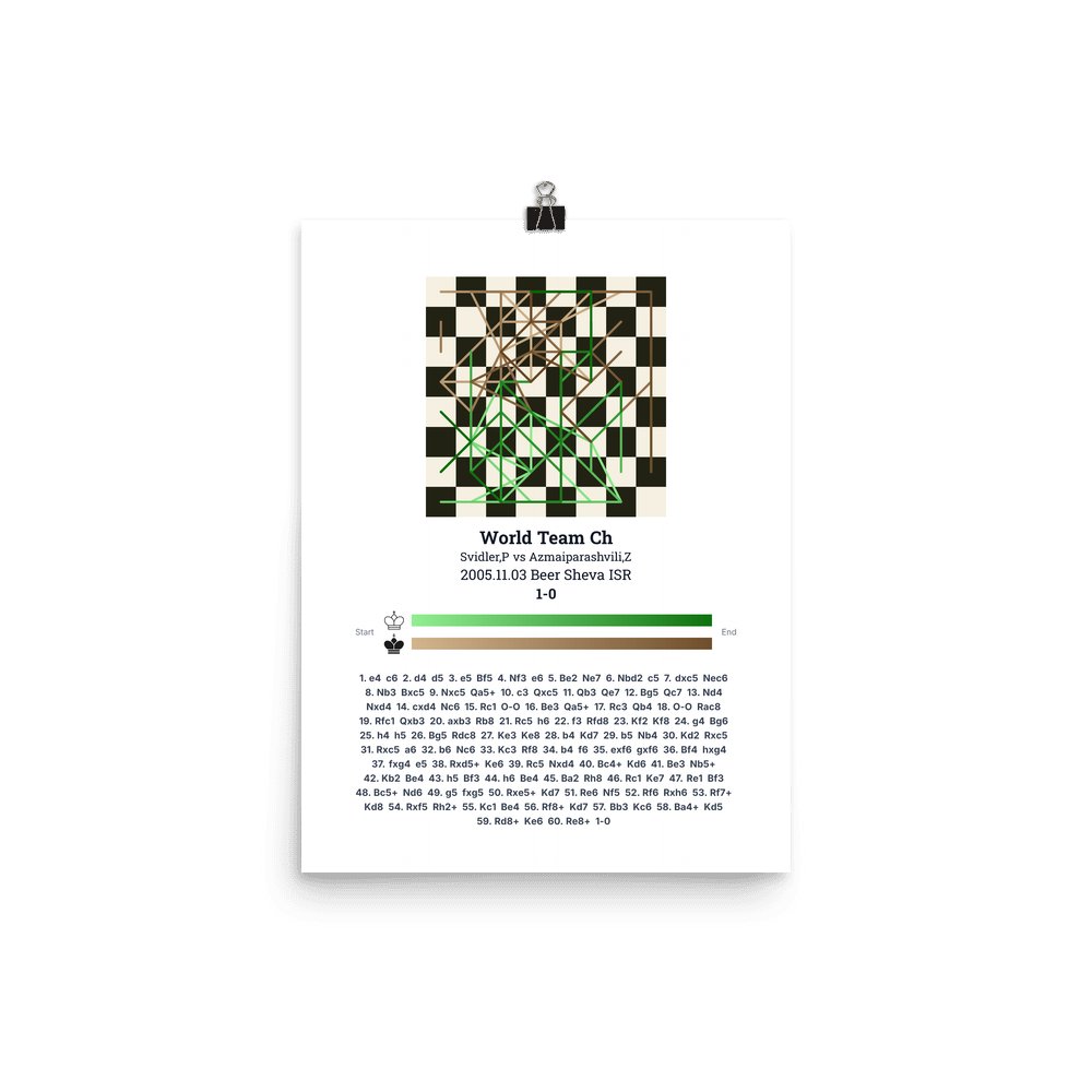 Museum-quality poster on thick, durable matte paper. A sharp, clean look for any chess visualisation.