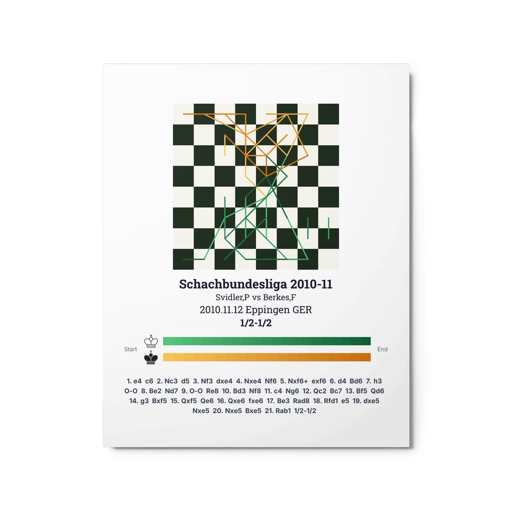Museum-quality poster on thick, durable matte paper. A sharp, clean look for any chess visualisation.