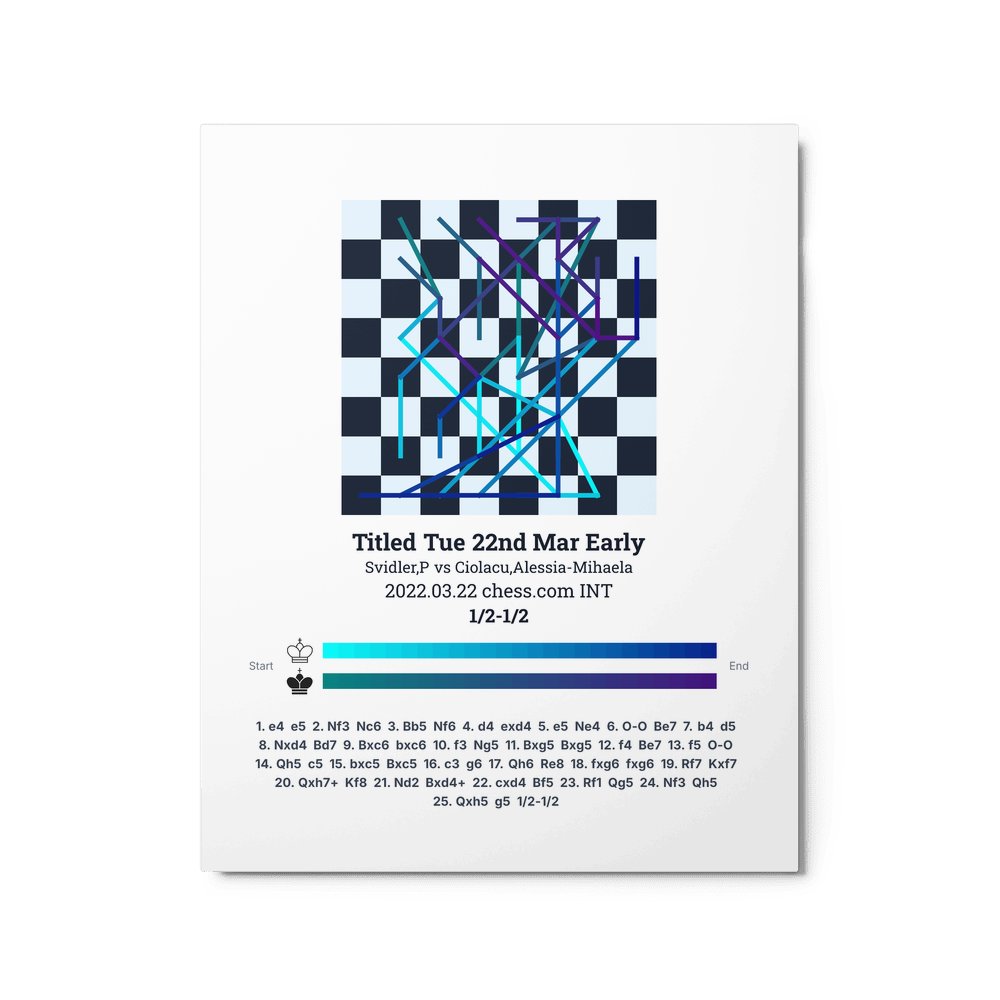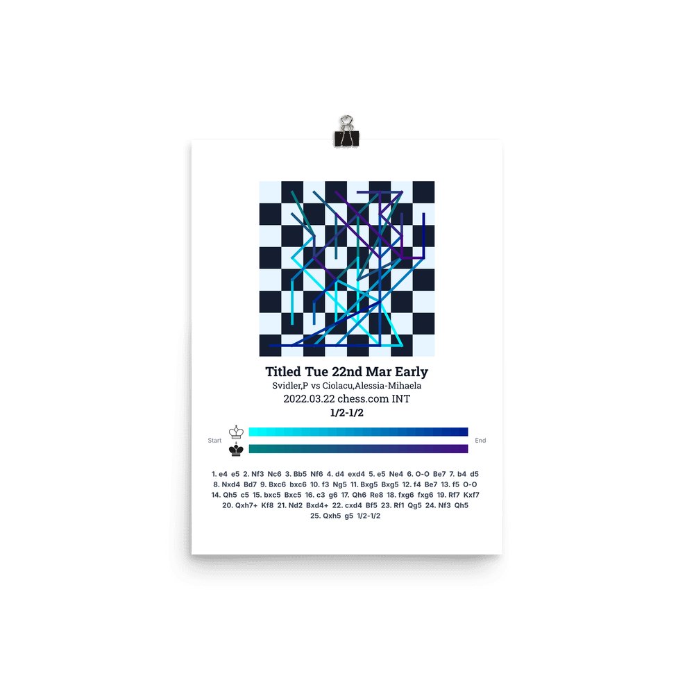 Museum-quality poster on thick, durable matte paper. A sharp, clean look for any chess visualisation.