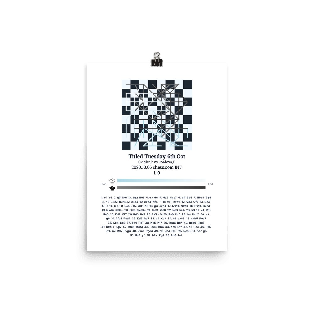 Museum-quality poster on thick, durable matte paper. A sharp, clean look for any chess visualisation.