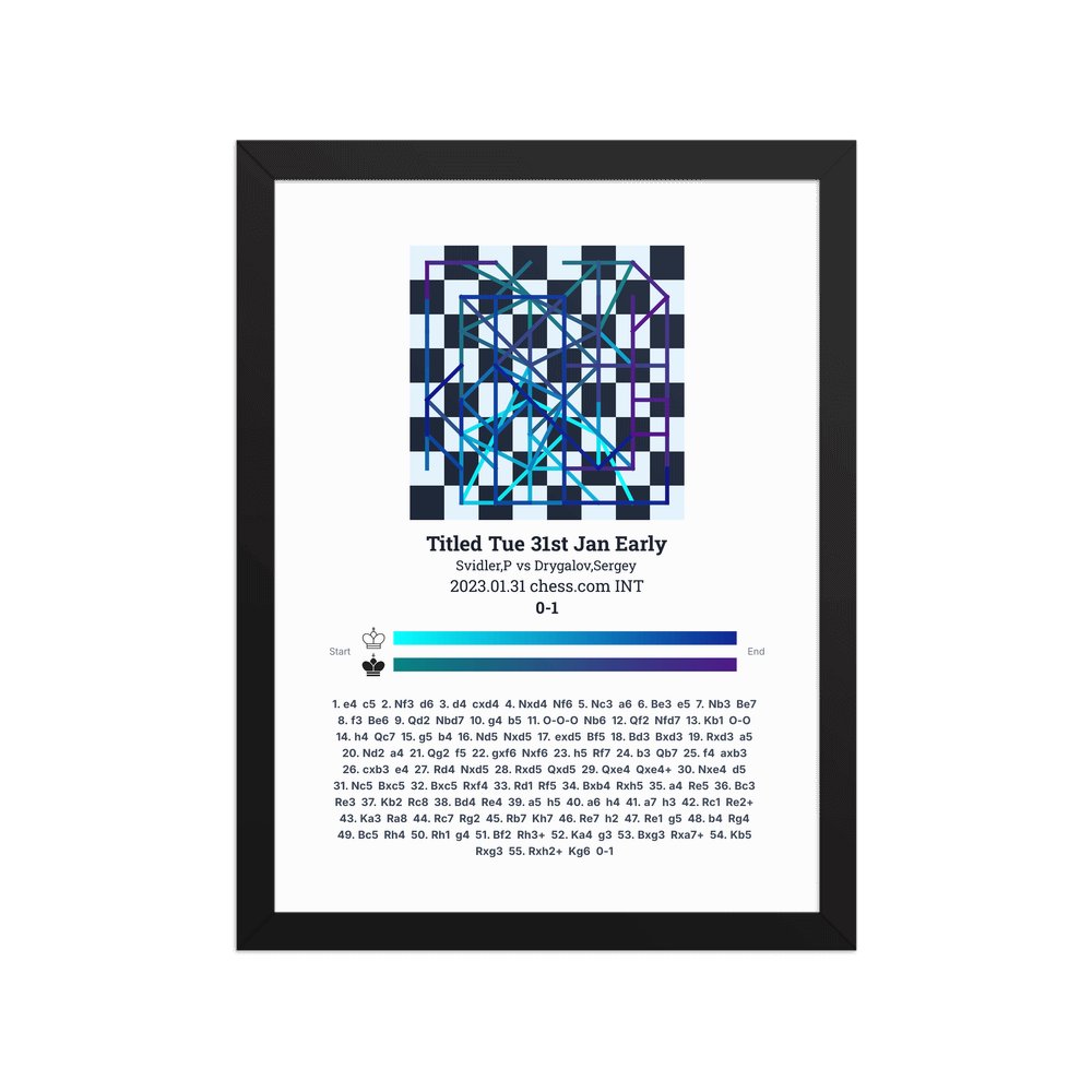 Museum-quality poster on thick, durable matte paper. A sharp, clean look for any chess visualisation.