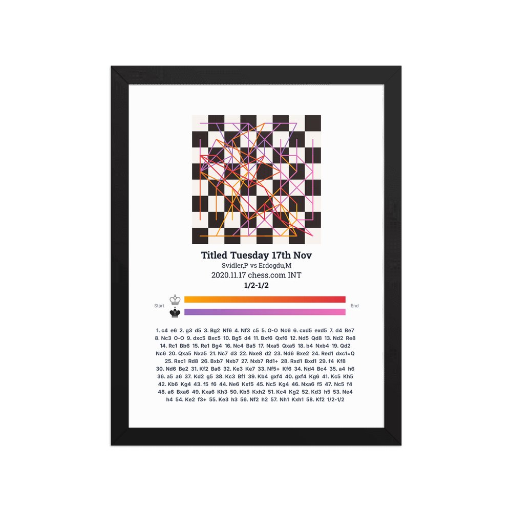 Museum-quality poster on thick, durable matte paper. A sharp, clean look for any chess visualisation.