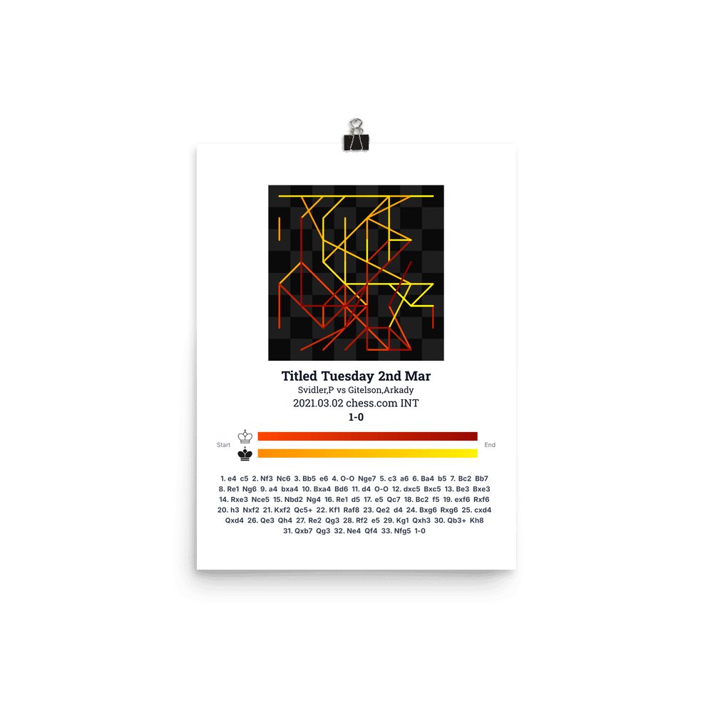 Museum-quality poster on thick, durable matte paper. A sharp, clean look for any chess visualisation.