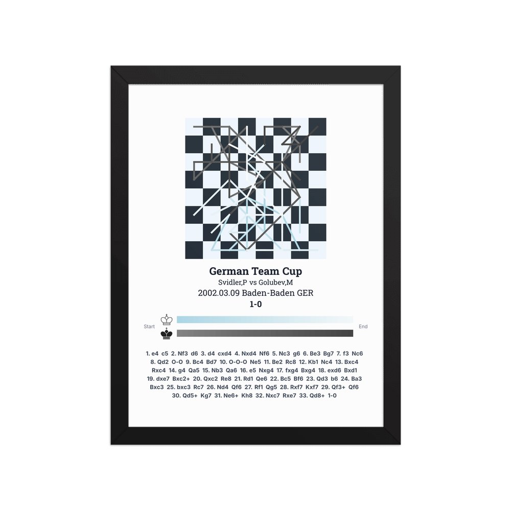 Museum-quality poster on thick, durable matte paper. A sharp, clean look for any chess visualisation.
