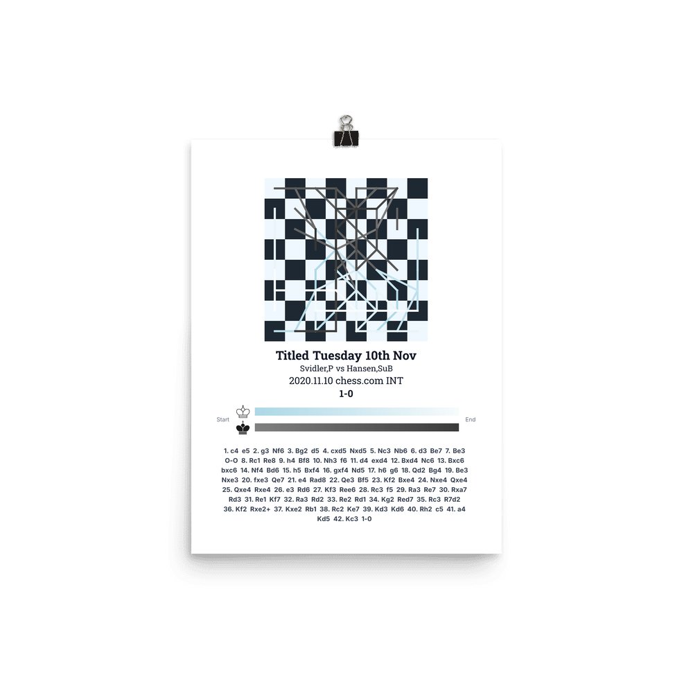 Museum-quality poster on thick, durable matte paper. A sharp, clean look for any chess visualisation.