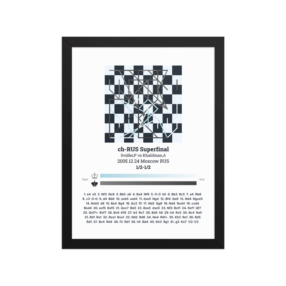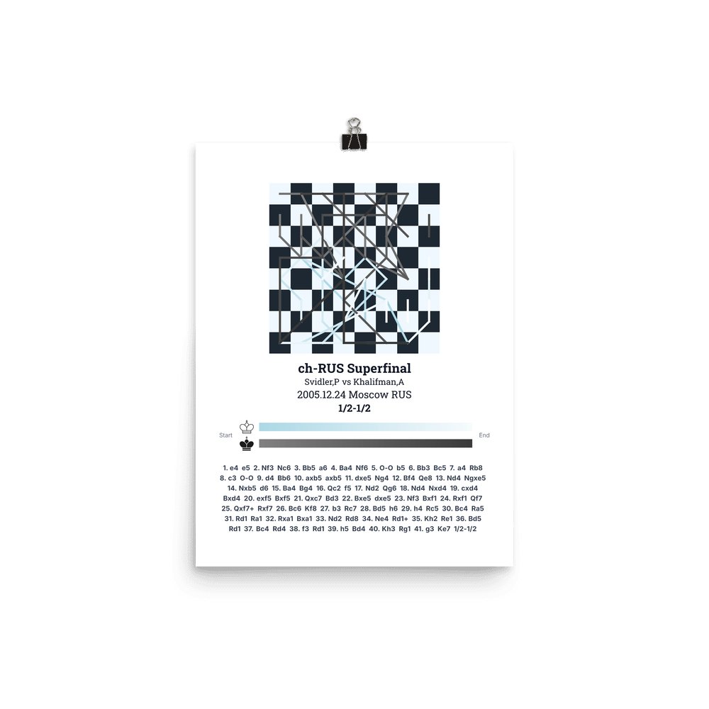 Museum-quality poster on thick, durable matte paper. A sharp, clean look for any chess visualisation.