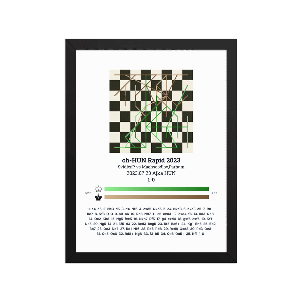 Museum-quality poster on thick, durable matte paper. A sharp, clean look for any chess visualisation.