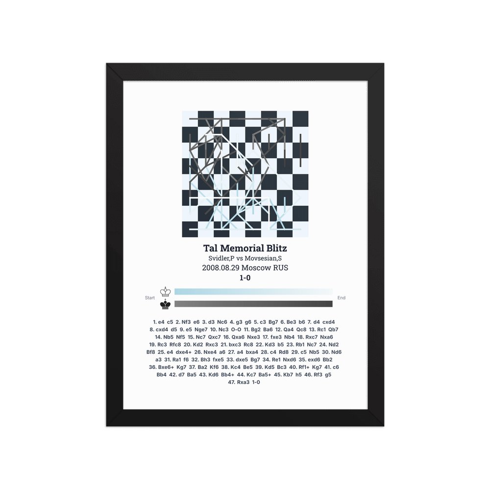 Museum-quality poster on thick, durable matte paper. A sharp, clean look for any chess visualisation.