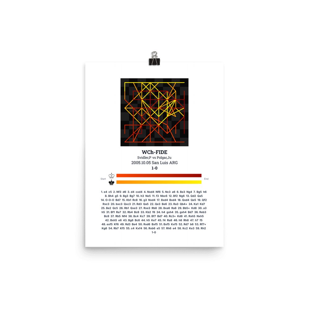 Museum-quality poster on thick, durable matte paper. A sharp, clean look for any chess visualisation.