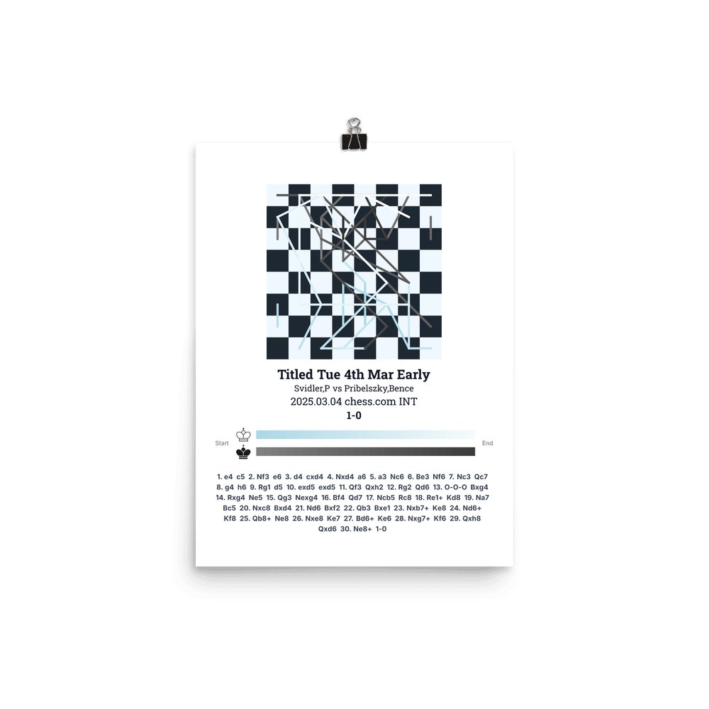 Museum-quality poster on thick, durable matte paper. A sharp, clean look for any chess visualisation.