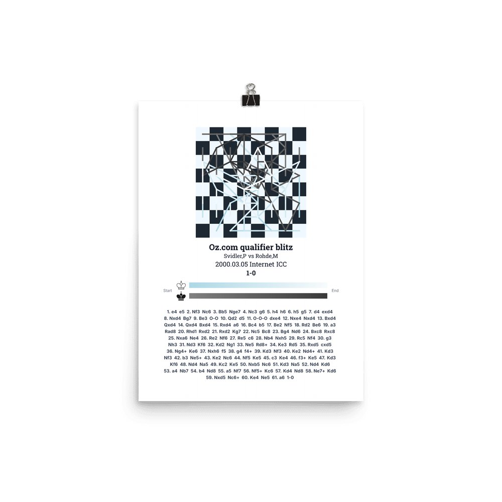 Museum-quality poster on thick, durable matte paper. A sharp, clean look for any chess visualisation.