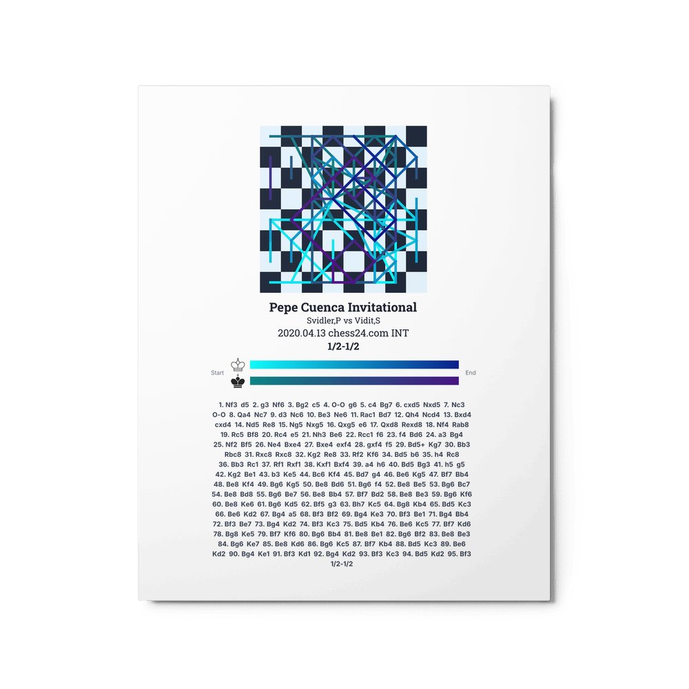 Museum-quality poster on thick, durable matte paper. A sharp, clean look for any chess visualisation.