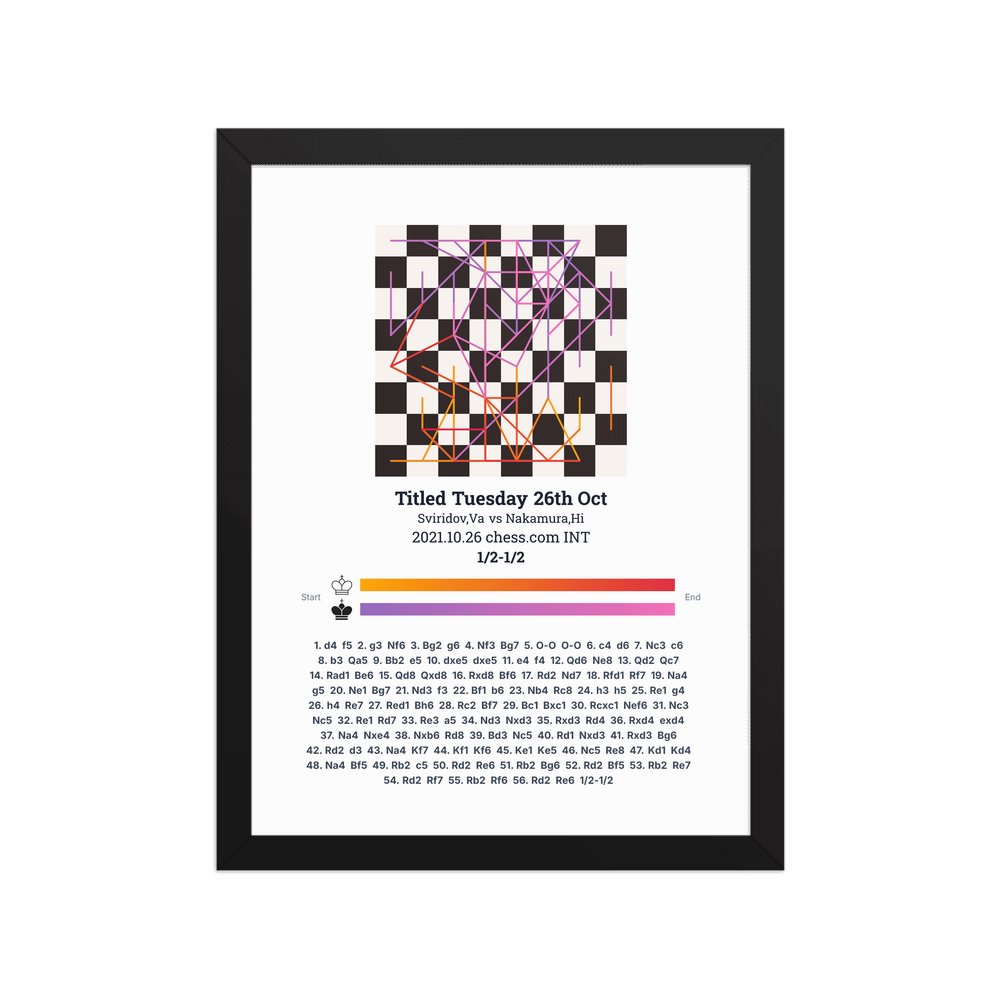 Museum-quality poster on thick, durable matte paper. A sharp, clean look for any chess visualisation.