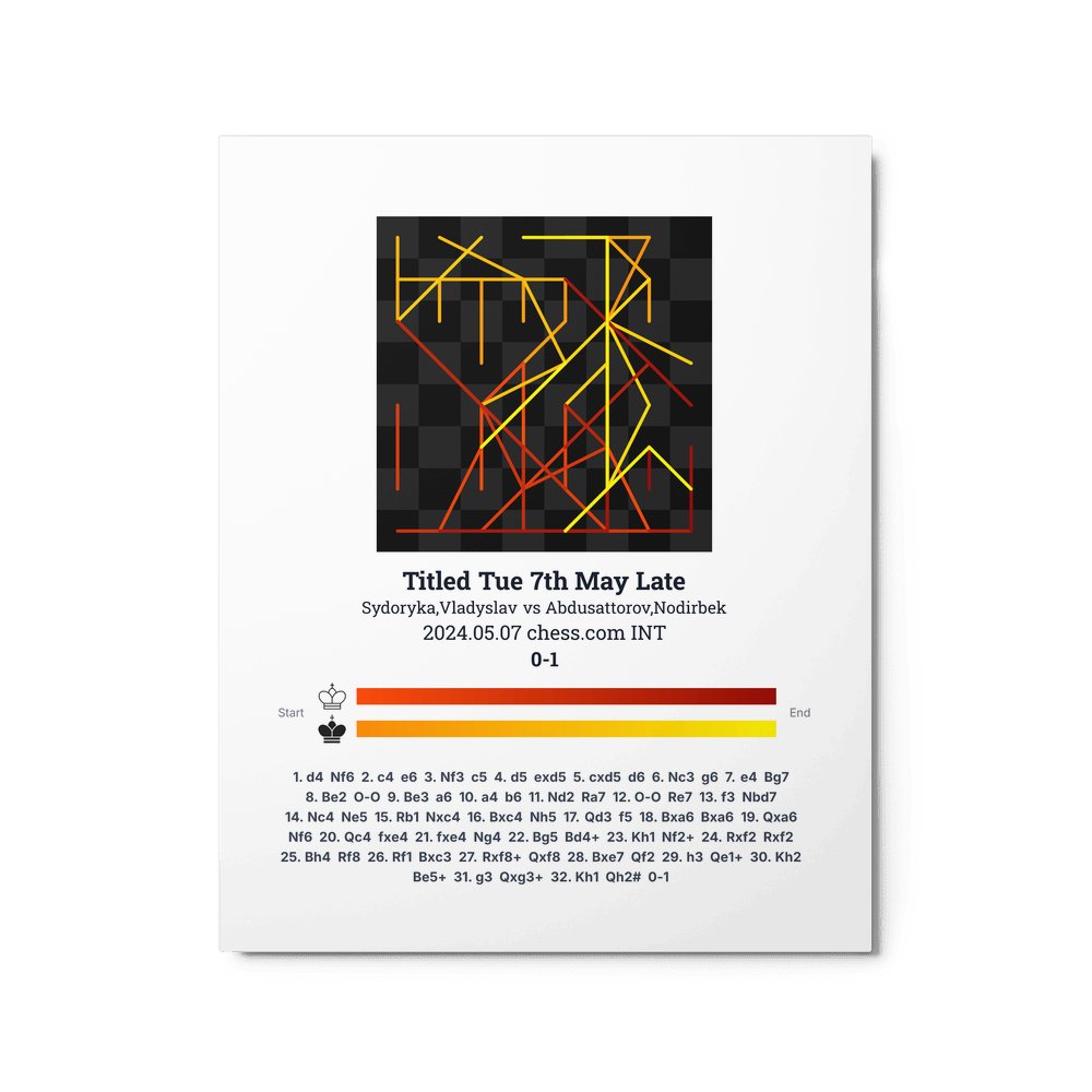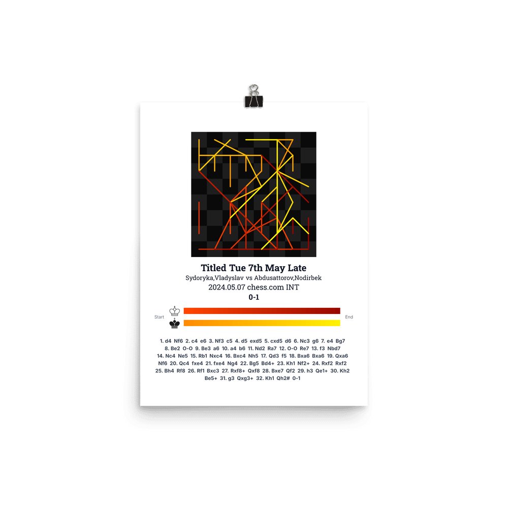 Museum-quality poster on thick, durable matte paper. A sharp, clean look for any chess visualisation.
