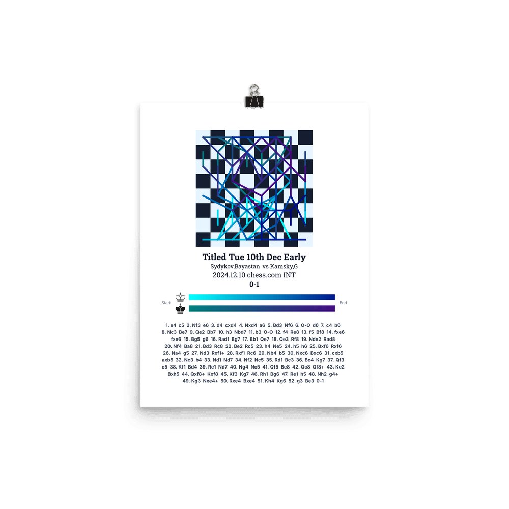 Museum-quality poster on thick, durable matte paper. A sharp, clean look for any chess visualisation.