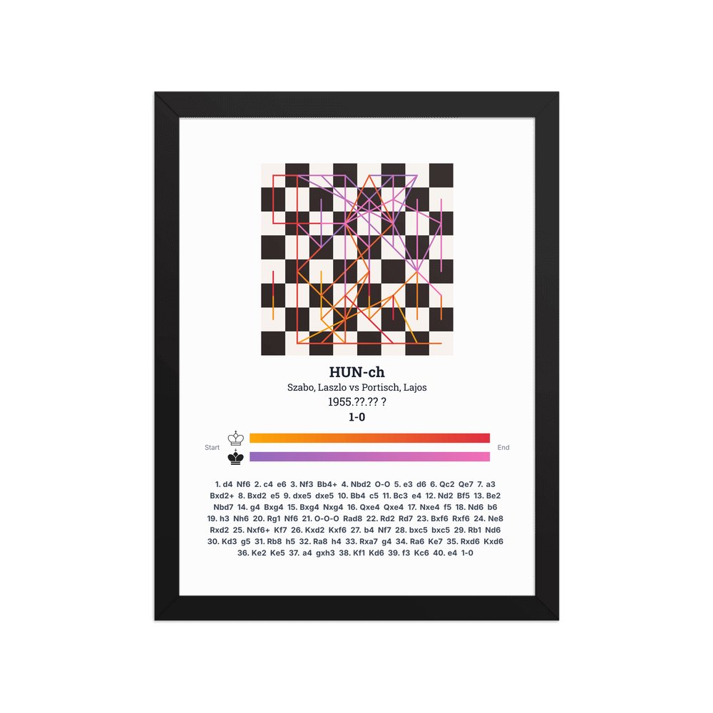 Museum-quality poster on thick, durable matte paper. A sharp, clean look for any chess visualisation.