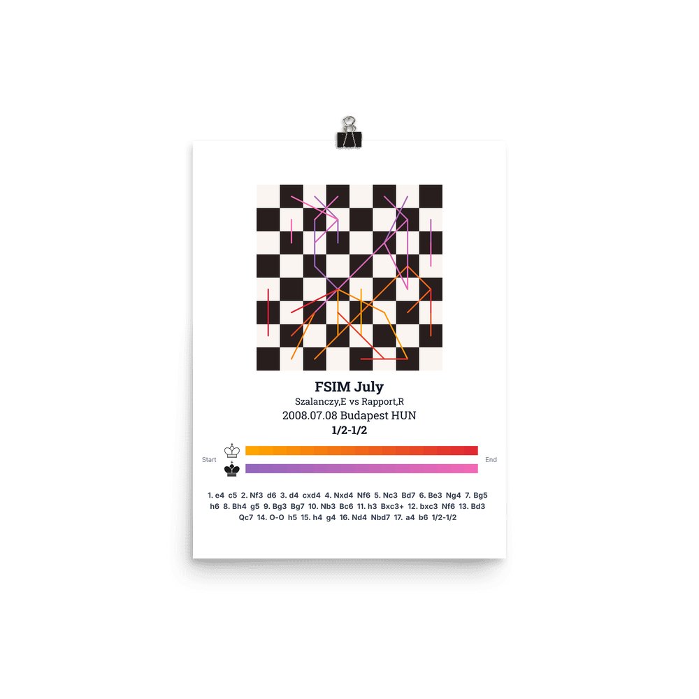 Museum-quality poster on thick, durable matte paper. A sharp, clean look for any chess visualisation.
