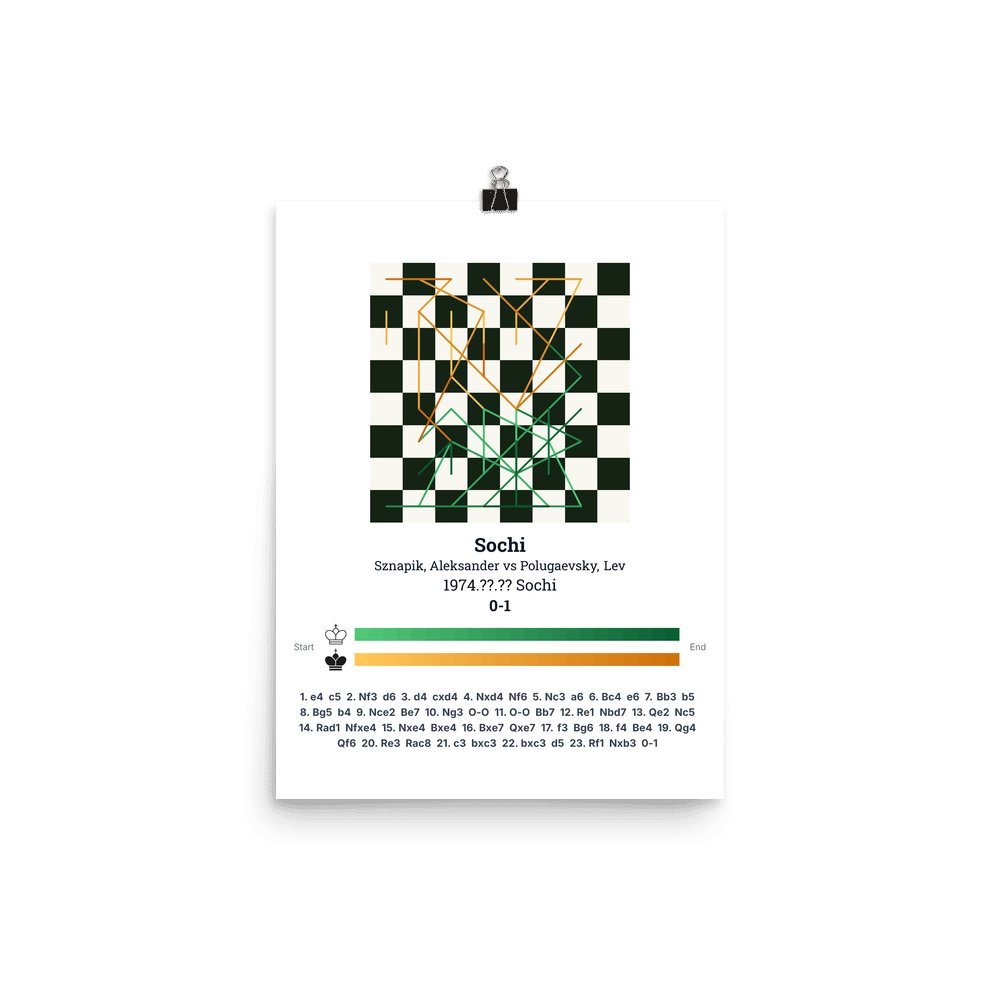 Museum-quality poster on thick, durable matte paper. A sharp, clean look for any chess visualisation.
