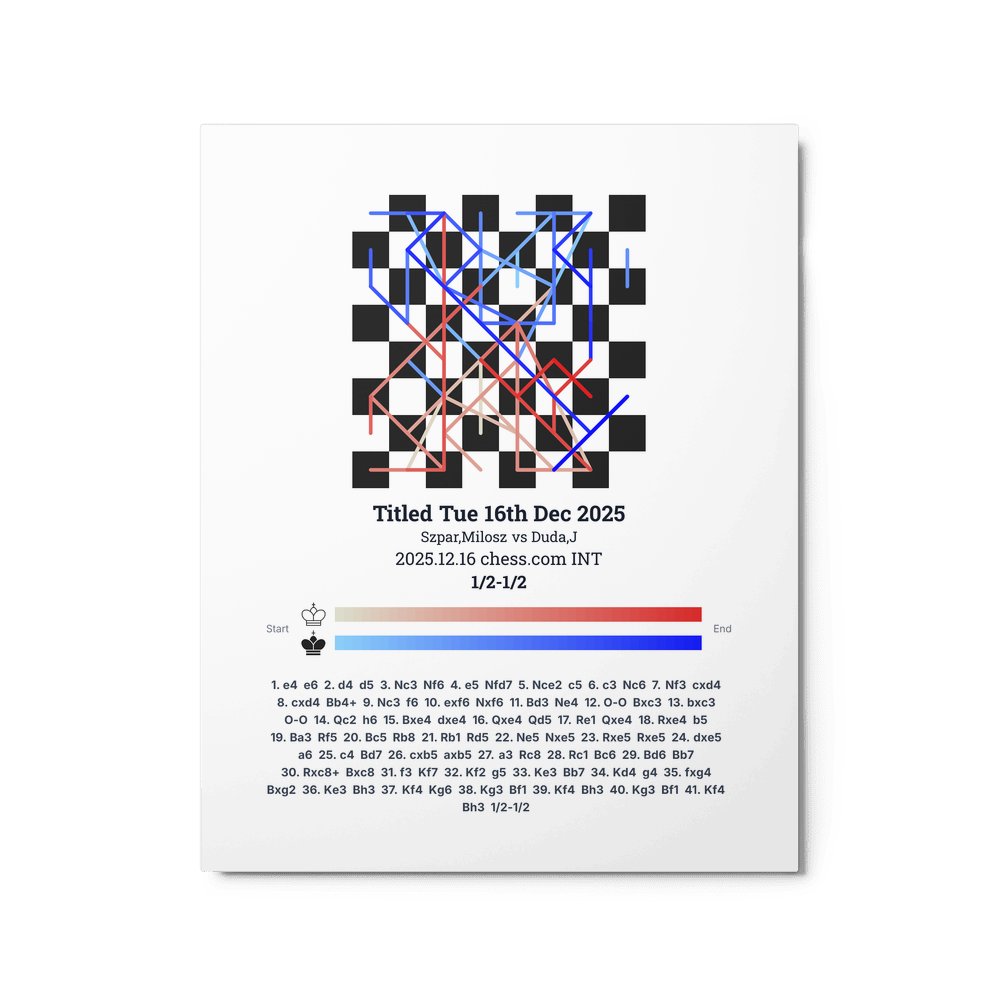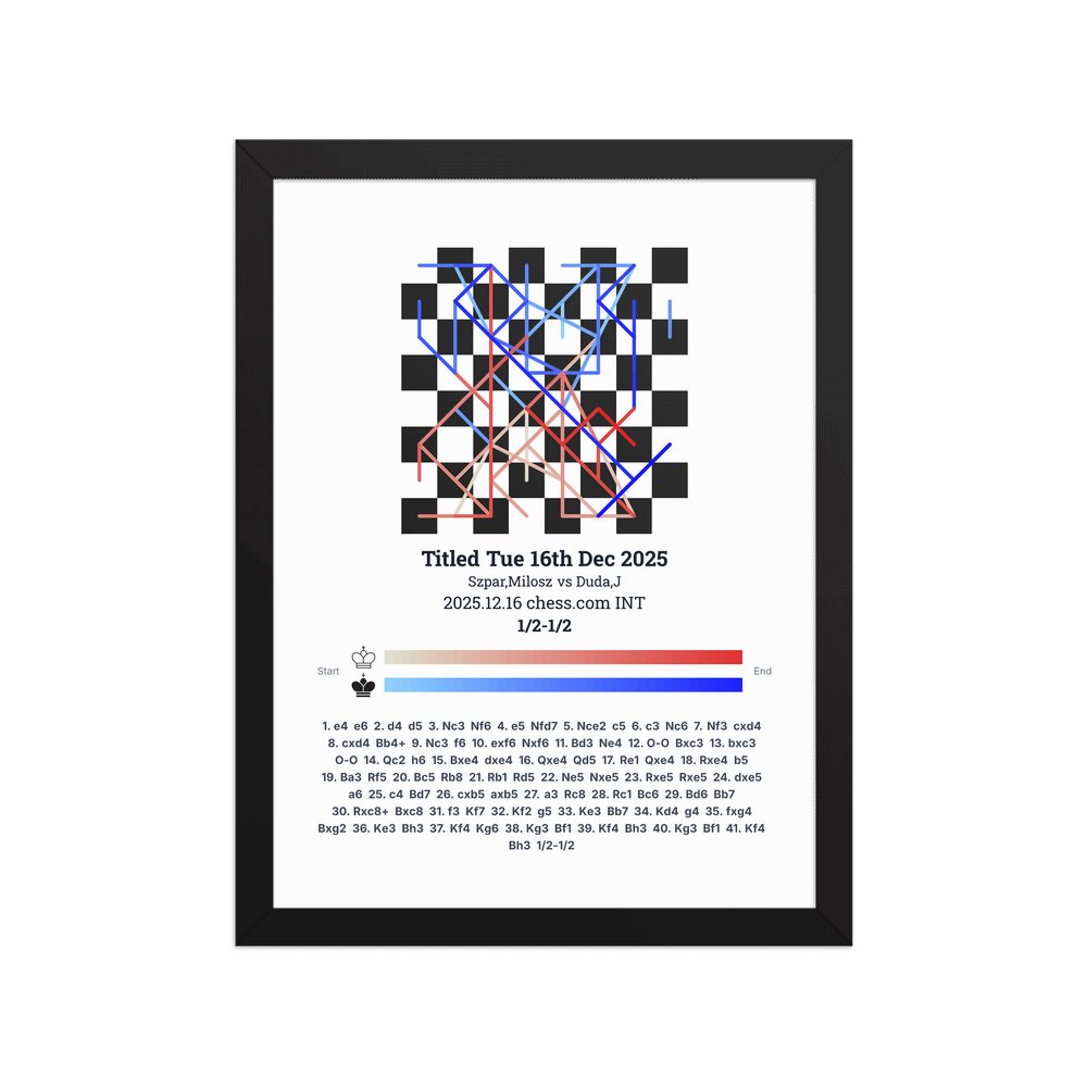 Museum-quality poster on thick, durable matte paper. A sharp, clean look for any chess visualisation.