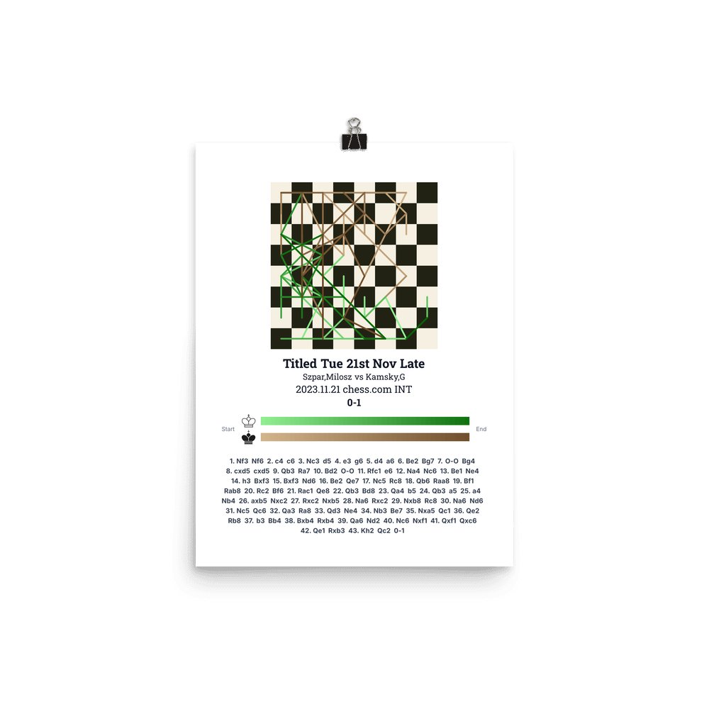 Museum-quality poster on thick, durable matte paper. A sharp, clean look for any chess visualisation.