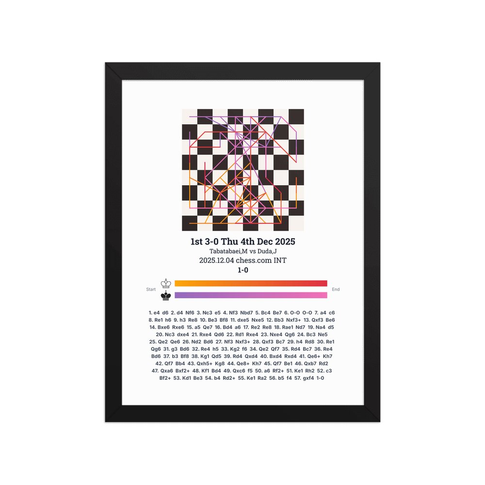 Museum-quality poster on thick, durable matte paper. A sharp, clean look for any chess visualisation.