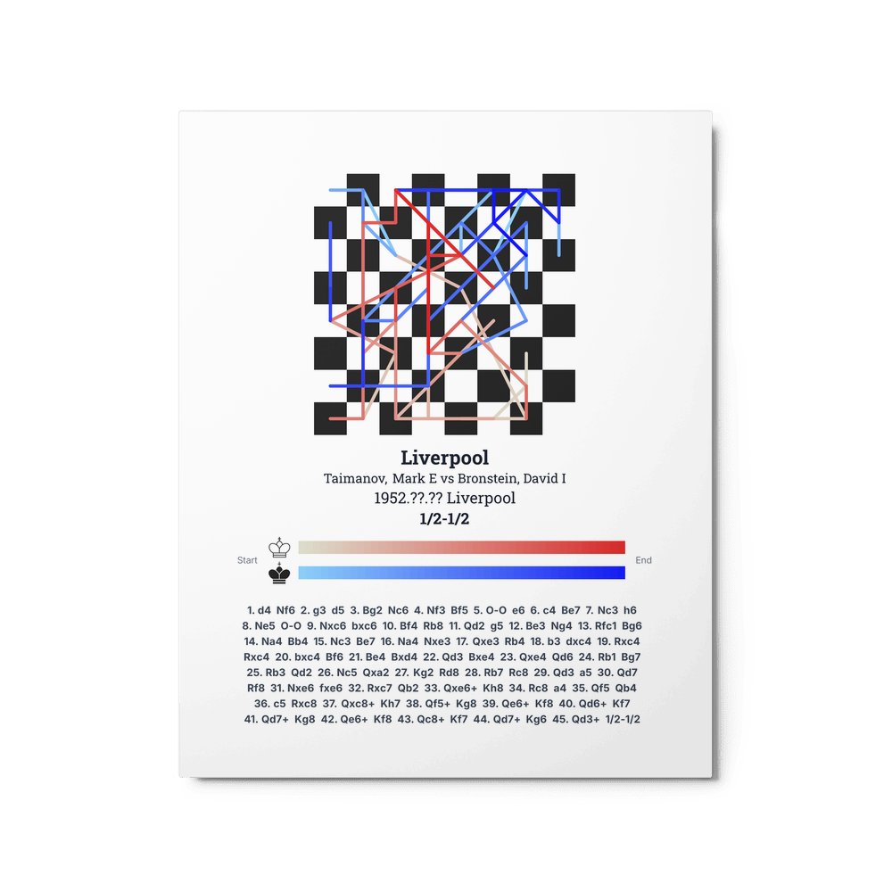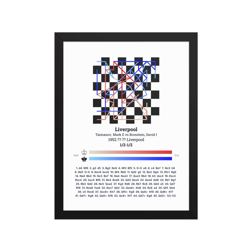 Museum-quality poster on thick, durable matte paper. A sharp, clean look for any chess visualisation.