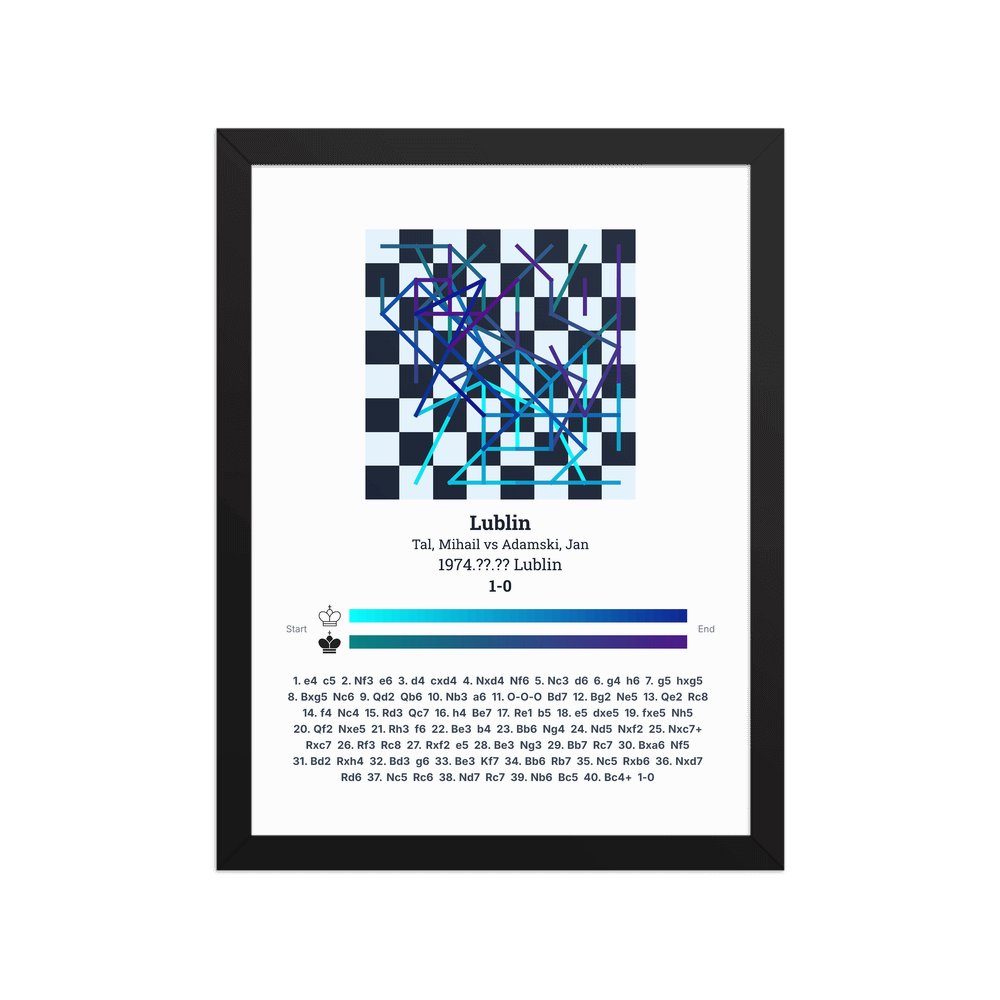 Museum-quality poster on thick, durable matte paper. A sharp, clean look for any chess visualisation.