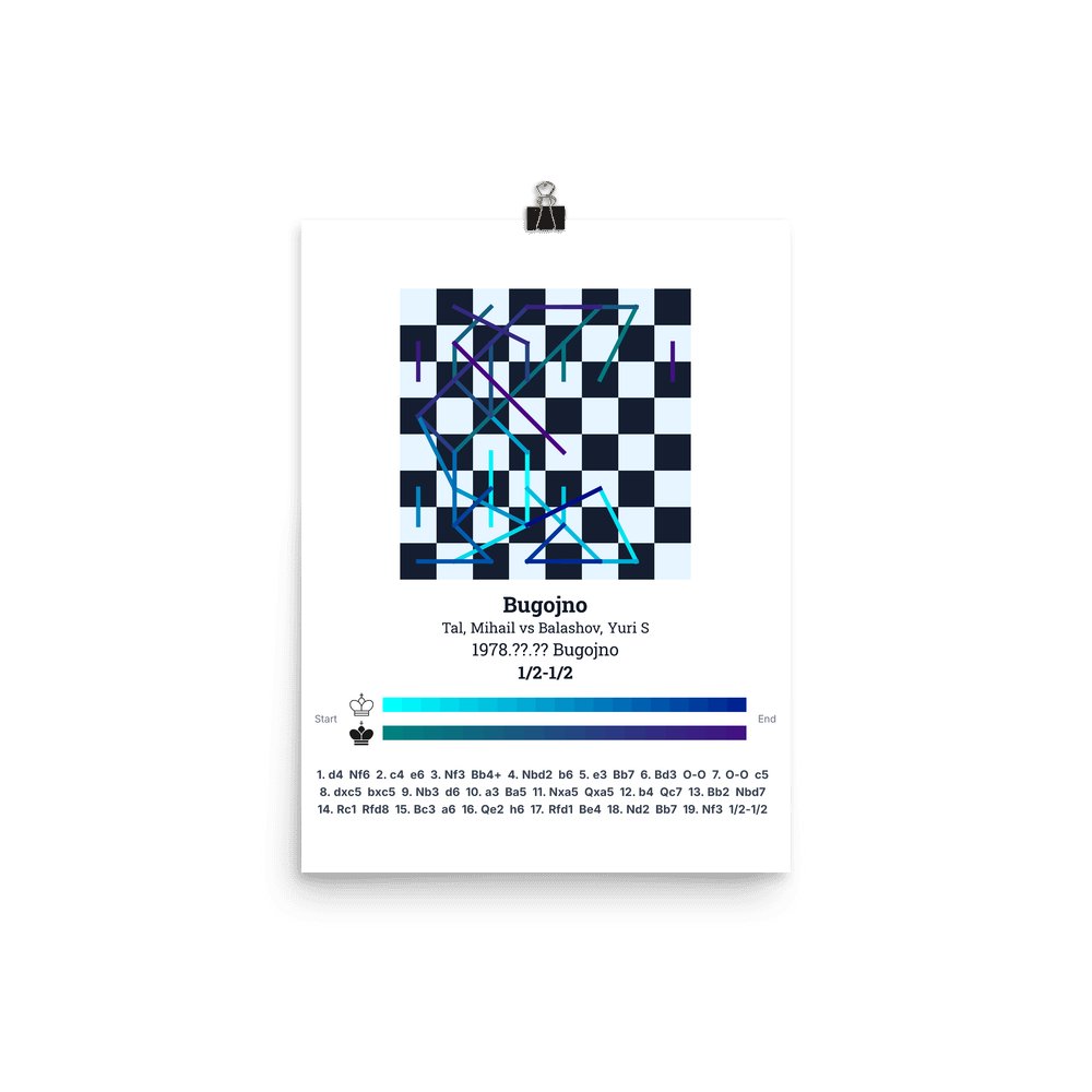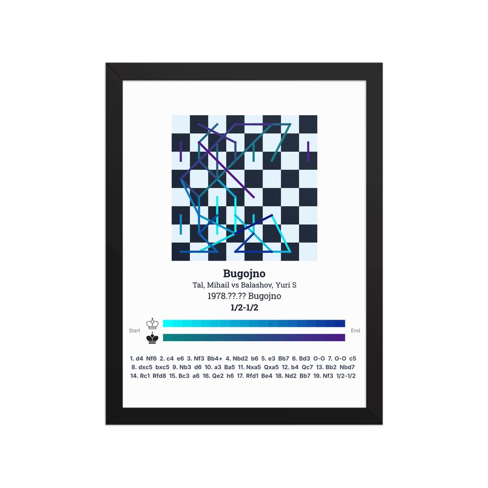 Museum-quality poster on thick, durable matte paper. A sharp, clean look for any chess visualisation.