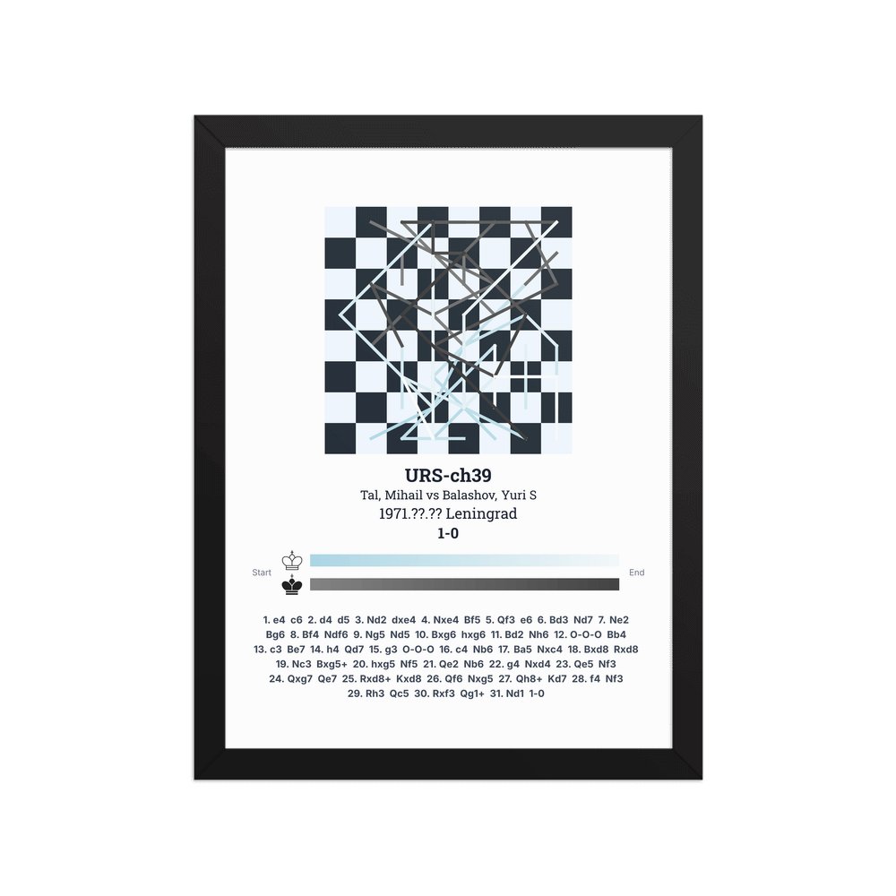 Museum-quality poster on thick, durable matte paper. A sharp, clean look for any chess visualisation.