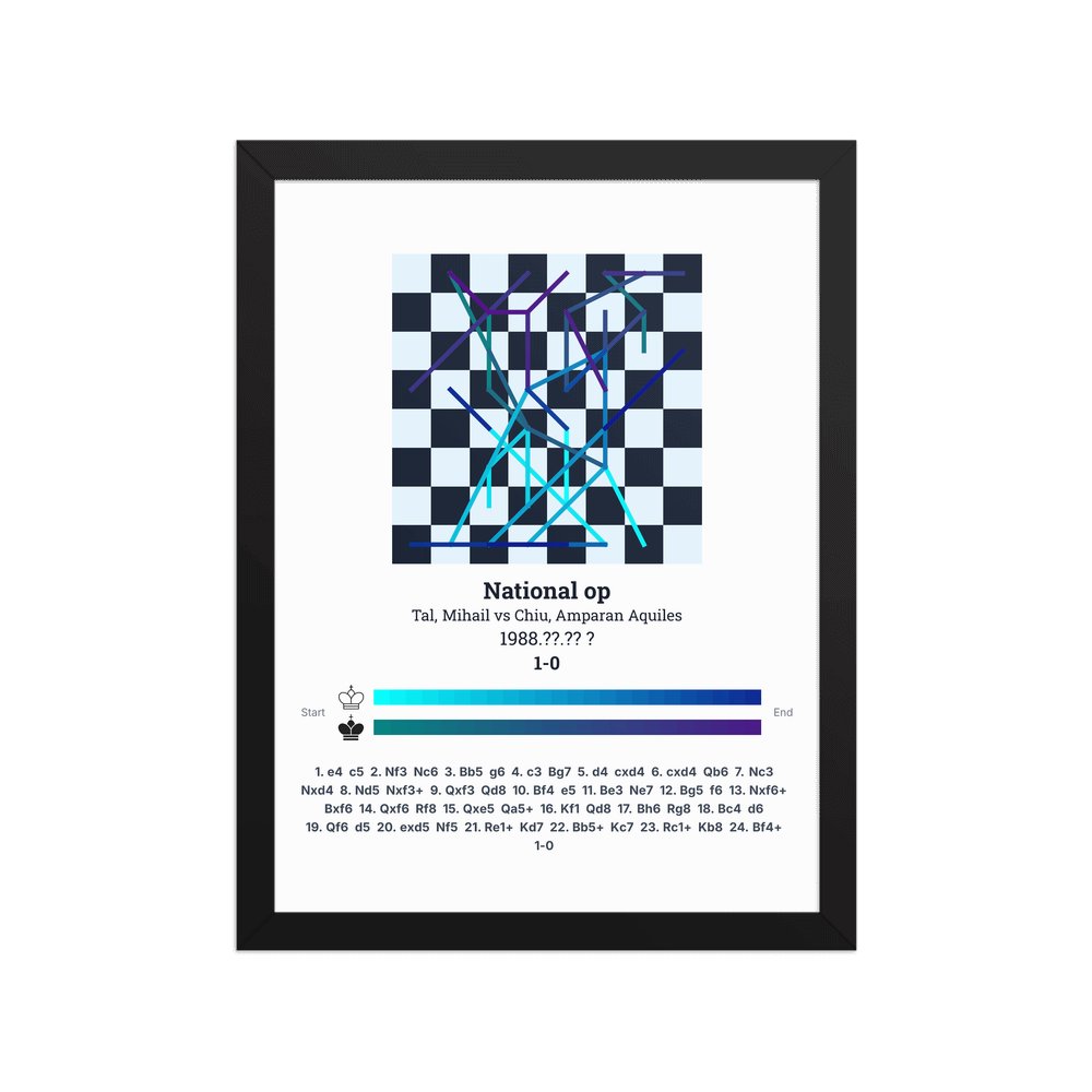 Museum-quality poster on thick, durable matte paper. A sharp, clean look for any chess visualisation.