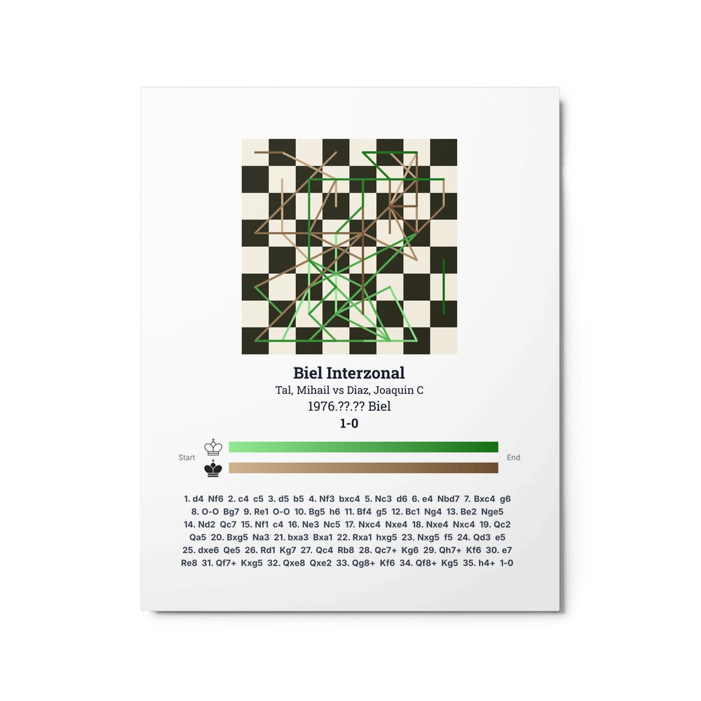 Museum-quality poster on thick, durable matte paper. A sharp, clean look for any chess visualisation.